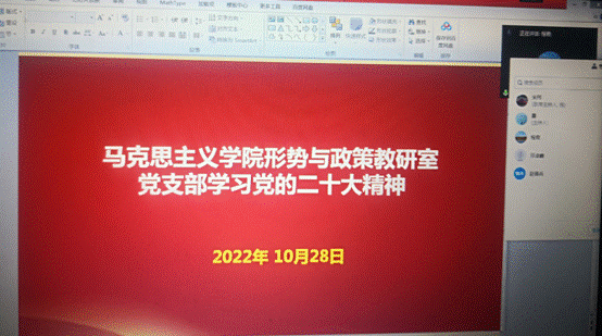 (通讯员 宋玮、赵普兵)10月28日下午,英国上市公司365形势与政策教研室党支部在线上集体学习党的二十大精神并进行理论研讨,研讨会由支部书记宋玮主持。
