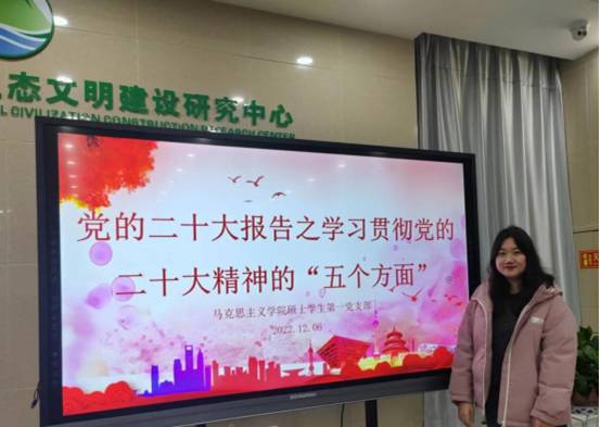 姚雪同志以党的二十大报告核心要义为切入点,以“五个牢牢把握”为主线进行宣讲。首先,她带领全体党员一起回顾了过去五年和新时代十年的伟大变革,感悟新时代的昂扬斗志,体会历史性变革的重大意义;其次,从马克思主义理论学科角度,阐述了牢牢把握新时代中国特色社会主义思想的世界观和方法论,要坚持做到“六个必须”,不断学习党的创新理论,用党的最新理论武装头脑,增强实践;再次,从员工党员的角度讲解了新的历史征程上中国共产党的中心任务,号召全体党员应将小我融入大我之中,让青春在全面建设社会主义现代化国家的火热实践中绽放绚丽之花;然后,姚雪同志以史鉴今,指出中国共产党永不褪色的秘诀就是自我革命精神,这就要求党员同志要做到“三个务必”:即务必不忘初心、牢记使命,务必谦虚谨慎、艰苦奋斗,务必敢于斗争、善于斗争;最后,她将历史与现实相结合,讲到团结奋斗是中国人民创造历史伟业的必由之路,全国人民只有心往一处想、劲往一处使,才能推动中华民族伟大复兴号巨轮乘风破浪、扬帆远行。
