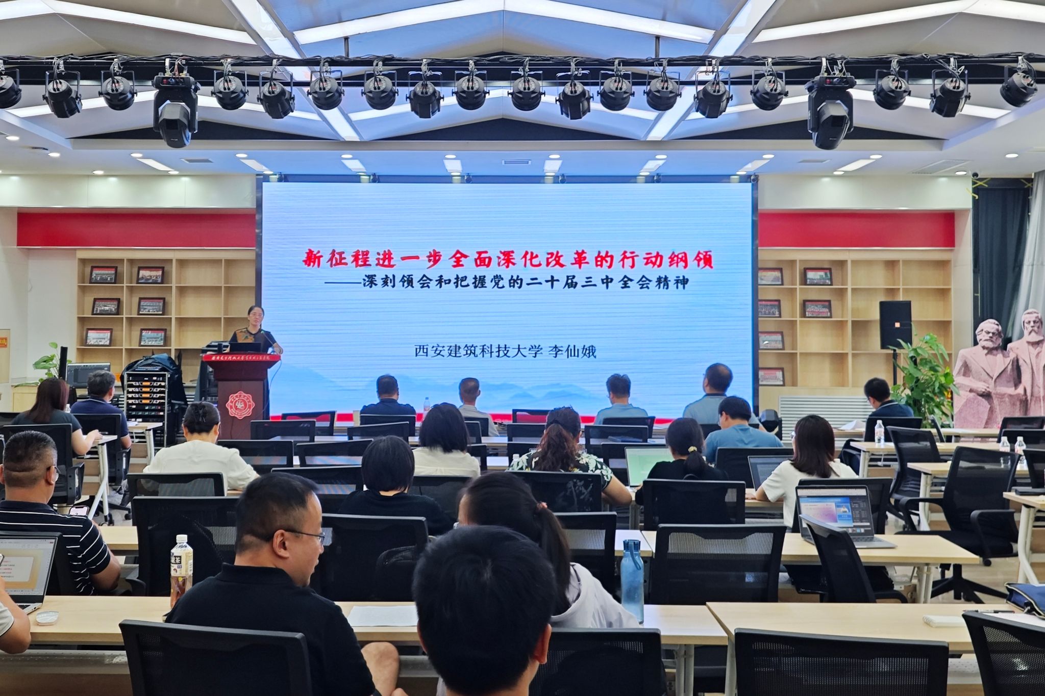 西安建筑科技大学的李仙娥教授作题为《新征程进一步全面深化改革的行动纲领——深刻领会和把握党的二十届三中全会精神》的专题辅导报告。李仙娥从进一步全面深化改革的重大意义、总体要求以及重要举措三个方面进行了全面而深入的剖析。同时,她就如何在实际工作中贯彻落实全会精神提出了具体思路和举措。