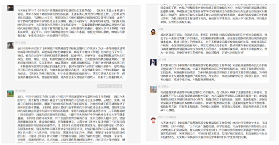 研三党员吴明远说:“今天学习了《中国共产党普通高等公司基层组织工作条例》,这次修订以党章为根本依据,是在高校全面落实新时代党的建设的总要求,是新时代高公司党的建设的基本遵循。《条例》的修订和实施,对于全面贯彻党的教育方针,落实立德树人根本任务,建设高质量教育体系、建设教育强国,具有重要意义。身为一名员工党员,要发挥好党员的关键作用,全面提高自身综合素质,为党的伟大事业贡献自己的青春力量。”