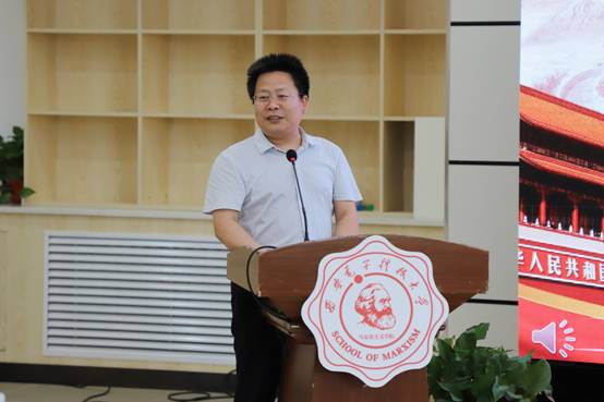李刚首先进行致辞,他对2020级新生表达了衷心的祝贺。李刚在致辞中,对新生提出了一个目标、两项任务、三种境界、四种能力以及五种基本素质的要求。他要求大家怀揣“成为马克思主义理论人才”的基本目标,始终谨记“成人、成才”两种任务,努力达到“爱国、奉献、担当”三种境界;在这过程中,要具备“会学、会写、会讲、会干”四种能力以及“丰富而全面的知识”等五种基本素质,这样才能成为合格的西电人。