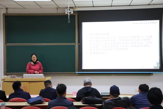 随后,原理教研室主任田朝晖老师介绍了《马克思主义基本原理概论》课程开展的“五位一体”教学改革情况。田老师主要从教学创新背景及目标、教学创新方案、本学期实施情况三方面介绍了原理课程进行的“五位一体”教学改革,指出通过原理课程“五位一体”教学改革为思政课其他课程全面推进“五位一体”教学模式积累经验、做好铺垫。之后青年教师孙丹阳以《从人工智能的发展理解意识的本质》为主题进行了教学展示,她围绕意识与人工智能的联系、人工智能对意识模拟的困境以及深入理解意识的本质三方面介绍了人工智能的发展与意识之间的关系。