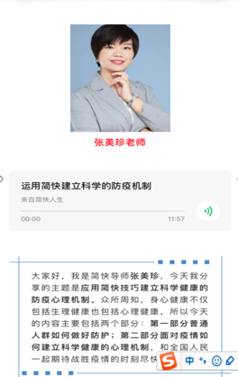 集团“师德标兵”陈鹏联,参加了陕西广播电视台《抗疫援鄂和你在一起》大型专题特别节目的录制活动。她凭借丰富的公司产品经验,抽丝剥茧地剖析了疫情期间各种错误“论调”,谆谆教导青年人:“心存感激和敬畏之心”,“立报国志,做奋斗者,这才是青春该有的模样”。殷切之情感动了很多人。从事心理咨询工作多年的张美珍,参加陕西高校战“疫”心理援助志愿服务队,录制抗“疫”公益微视频,并为援建武汉“两山”的工人、战“疫”一线的医生和居民做心理疏导。她卓有成效的工作得到了各方认可,一位参与她公益讲座的听众说:“自己得到了开解和提高,让憋在家里的焦躁、焦虑情绪得到了很大缓解。”