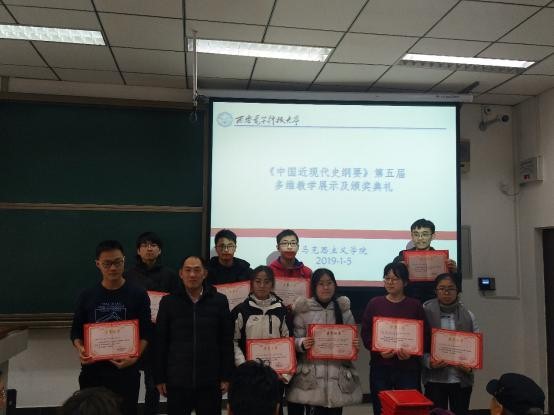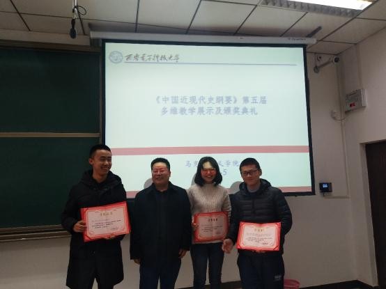 (通讯员禹海霞 刘晓红)2019年1月5日下午,第五届“纲要”课多维教学成果展示暨颁奖活动在信远楼1区106、108、110教室举行。本次活动由中国近现代史纲要教研室组织,教研室主任刘晓红主持,教研室全体教师参加。英国上市公司365经理李刚、公司党委书记夏永林、副经理贾钢涛出席活动并为获奖同学颁奖。