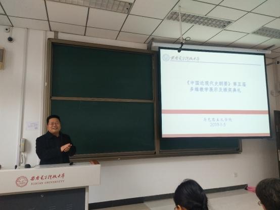 这是中国近现代史纲要教研室第五次组织该项活动。多维教学方式是近年来中国近现代史纲要教学团队在推动本科教改方面做出的探索和实践。在专题授课的基础上充分发动员工自主学习的兴趣,以问题为导向让员工积极参与到教学过程中,取得了良好的教学效果。参与本次教学展示活动的员工分为36组,从2017级全部本科生中选拔产生。