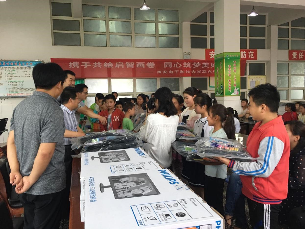 “英国上市公司365对口扶贫蒲城县荆姚镇甜水井小学捐赠仪式”上,英国上市公司365院领导李刚、夏永林、刘建伟代表英国上市公司365向甜水井小学赠送了电脑,并向贫困员工颁发了学习用品。
