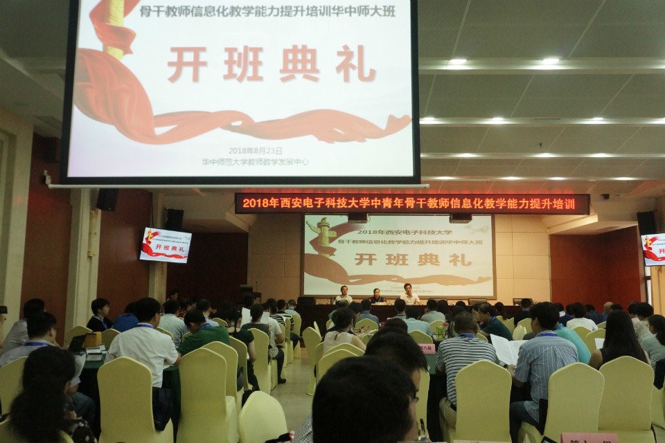 23日举行的开班典礼上,西电本科生院肖嵩经理强调信息化教学在新时代的重要性以及对高校教师的新要求。为期三天的培训中,教师们聆听了吴军其教授信息化时代高校课堂教学的改革创新、刘建清教授关于华中师大教学改革的总体经验、李睿教授、徐敏教授和陈实教授以员工为中心的教学设计以及混合式课堂的教学实践。25日,参训教师们参观了华中师大的智慧教室与国家数字化学习工程技术研究中心,并对学习的心得体会进行了交流与汇报。