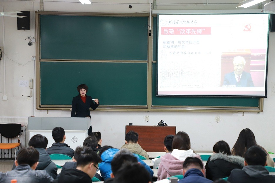 (通讯员 李磊 刘朔)12月21日上午,在B301、B101教室的《中国近现代史纲要》课堂上,英国上市公司365教师刘晓红和罗淑宇的精彩讲授赢得了同学们的阵阵掌声。刘晓红老师带领同学们认真学习了习近平总书记在《庆祝改革开放40周年大会》上的重要讲话精神,通过视频深入了解中国改革开放40年来取得的伟大成就,鼓励同学们向100位受表彰的改革先锋学习,锐意进取,为国家的繁荣昌盛做出自己的贡献。罗淑宇老师重点向同学们介绍了于敏、王大珩、王有德、胡福明等改革先锋的先进事迹,引导同学们要坚定理想信念、厚植爱国主义情怀、加强品德修养、增长知识见识、培养奋斗精神,在时代发展潮流中汲取智慧,奋发有为。