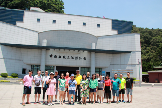7月20日上午,实践研修团参观了泉州清源山下的中国闽台缘博物馆。该馆是反映祖国大陆(福建)与宝岛台湾历史关系的国家级专题博物馆,馆藏陈列从历史学、考古学、人类学、社会学、民俗学等角度,以殷实的实物、文献、图片等资料,科学、真实、直观、生动地展示并阐述了“台湾自古是中国的领土,祖国大陆人民与台湾同胞一脉相承”的历史事实。老师们不时与讲解员交流询问,深刻感受到闽南文化的博大精深,内心充盈着大陆人民与台湾同胞血浓于水、手足情深的深厚情感。