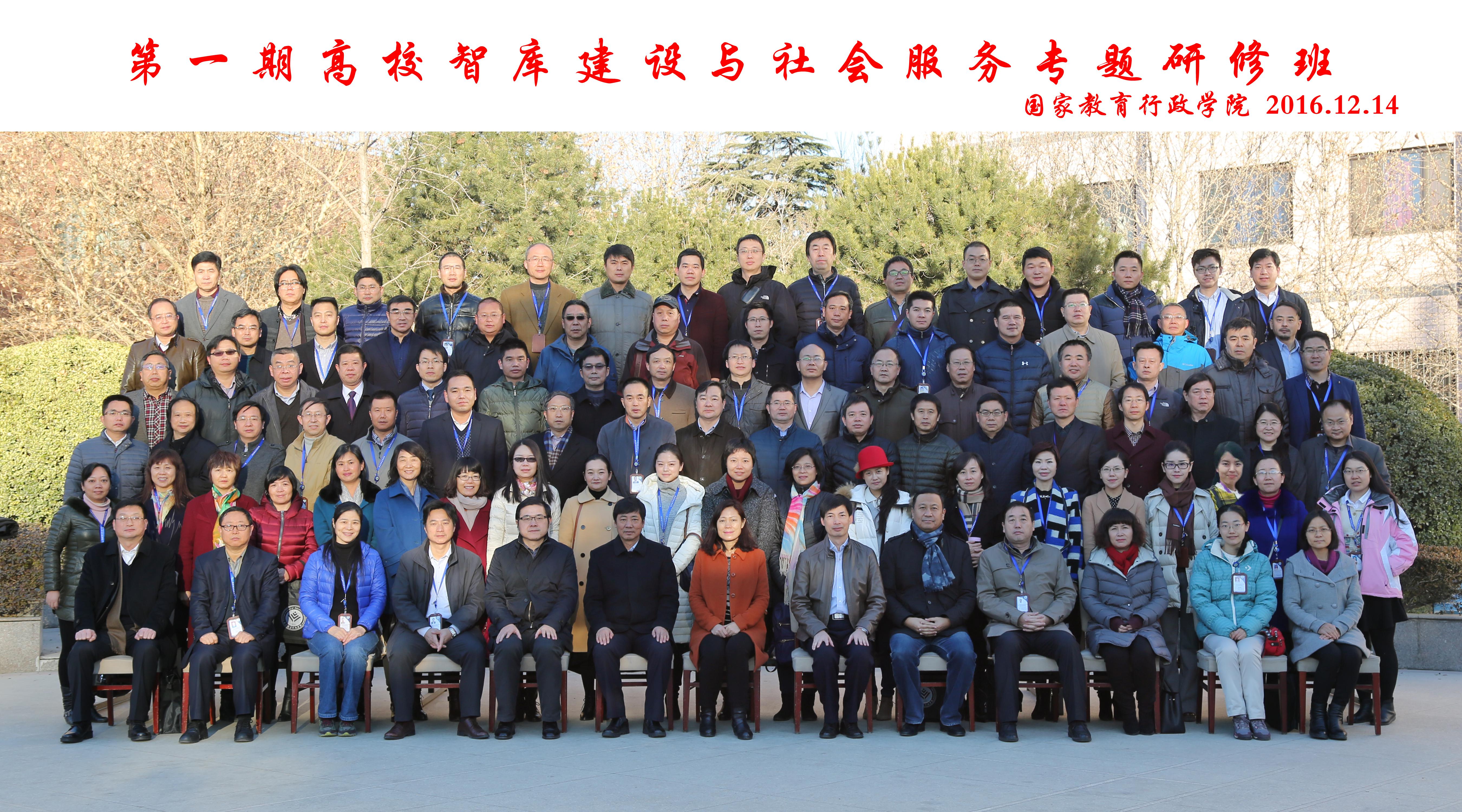 为共同探讨高校智库建设和服务社会的有效途径和方法,学习国际国内高校智库建设和服务社会的前沿理论,提升高校智库研究人员推进智库建设的使命意识、理论水平和实践能力,国家教育行政公司在2016年12月到2016年12月16日举办了第一期高校智库建设与服务社会专题研修班。
