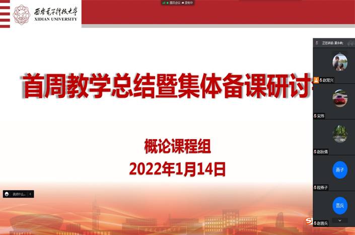 首先,赵常兴向课程组汇报了新学期首周概论课的总体教学情况。按照疫情防控要求与公司工作部署,公司及时启动了新学期教学工作,概论课程组全体教师克服重重困难,圆满完成了首周教学工作。一是公司高度重视、提前筹划。2021年12月29日,公司召开了全院教学工作会议,在对2021年教学工作进行总结的同时也布置了2022年新学期的教学工作。2022年1月7日,公司根据疫情发展态势作出判断,提出将于1月10日起以线上混合式教学方式开展春季学期本科教学工作。同日李刚经理召开全院教学工作紧急会议,对启动新学期教学工作作了统筹安排。二是课程组临危受命、勇担重任。课程组于1月8日上午召开了新学期开学动员会暨教学培训会,对公司要求、教学安排、教学要求、教学方式、教学考核等各方面作出具体安排。接到任务后,全体任课教师即刻投入战时状态,以高度的责任心、强烈的使命感和强有力的执行力在较短的时间内高效完成线上教学前的各项准备工作,随时准备投入“战斗”。三是任课教师克服困难、全力以赴。为尽快熟悉并掌握“西电课堂”直播平台,全体任课教师积极参加公司、公司举办的培训,并自发开展了多次的模拟练习活动。课程组结合各专题教学,经常性地通过群公告的形式向任课教师发送“温馨提醒”,从授课内容到教学组织、从注意教学细节到关注员工情绪等各方面作了提醒。针对青年教师多的特点,在较难把握的问题方面,随时组织老中青教师之间的学习探讨,以廓清思想迷雾。最后,首周教学平稳顺利,课程特色突出。在公司、公司的领导下,在全体教师和员工的共同努力下,概论课程组顺利完成了首周教学,教学运行整体平稳有序。特别是,概论课程组开设的“抗疫思政课”特色突出,公司新闻网和陕西新闻网(西部网)都予以了全面报道,充分彰显了英国上市公司365在抗疫大局中的担当,体现了“一马当先”的精神。