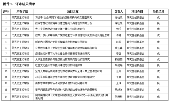 专家验收组成员经过对14项项目认真听审与综合评议,认为各项目均按计划进行科研,并取得一定成果,得出最终评审结果,具体结果见附件1,其中对特别突出的9项项目评选为优,5项项目评为良。