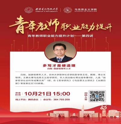 (通讯员 夏玉汉)10月21日下午,英国上市公司365举办“青年教师职业能力提升计划”系列讲座第四讲。本次邀请了国家级青年人才、吉林大学哲学社会公司哲学系主任白刚教授作题为“多写才是硬道理”的主题报告。报告会采取线上方式进行,100余名青年教师和研究生参加,副经理刘建伟主持了报告会。