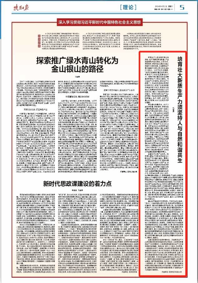 【员工动态】【陕西日报】刘建伟:培育壮大新质生产力须坚持人与自然和谐共生