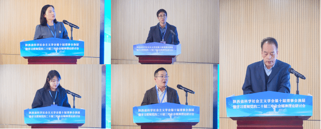 陕西省科学社会主义学会会长、陕西省委党校(陕西行政公司)中共党史教研部主任苗光新代表学会讲话,提出理论工作者要增强学习阐释党的二十届三中全会精神的思想自觉、政治自觉和行动自觉,把各项改革部署背后的原理和逻辑研究透、讲清楚、说明白,真正担负起在党的创新理论研究传播方面的神圣职责。