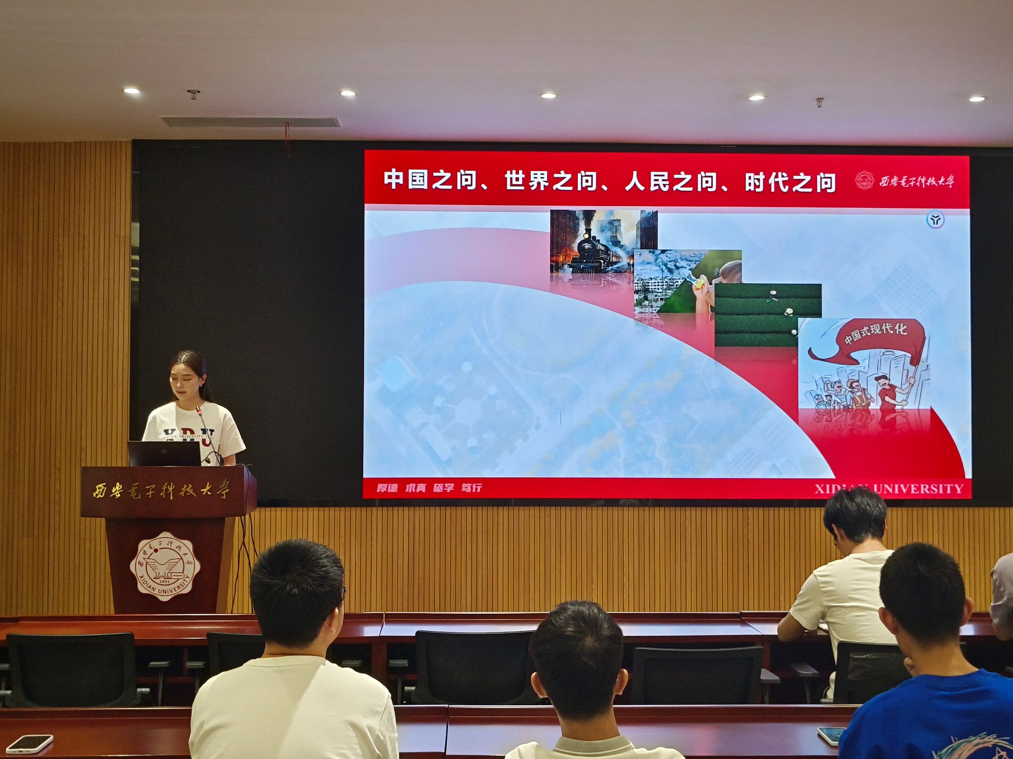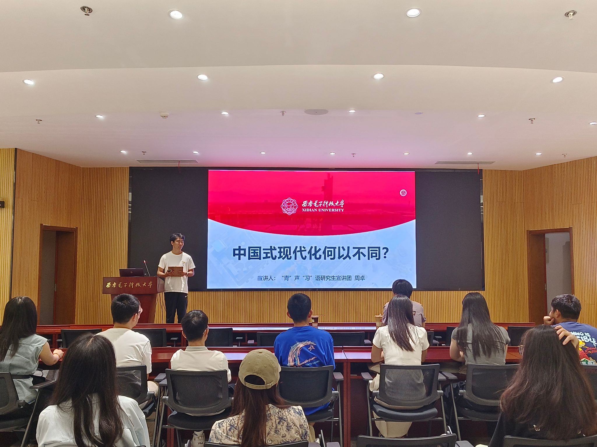 英国上市公司365“青”声“习”语研究生宣讲团成员周卓用一幅幅图画诠释了从新中国成立到“四个现代化”的奋斗目标再到中国式现代化,一代代共产党人带领人民开辟复兴之路的光辉历程,并以“何为中国式现代化?”、“中国式现代化何以不同?”两问拉开此次宣讲的序幕。紧接着,通过介绍荷兰、美国等现代化国家的崛起和我国基本国情、四川大凉山深处“悬崖村”翻天覆地的变化、贵州省火爆全网的台盘村“村BA”、从黄沙漫天到万亩绿洲的塞罕坝、超越西方现代化的包容互鉴的发展思维,周卓同学详细而生动地阐释了中国式现代化的五大特征。最后,周卓同学强调中国式现代化不是一蹴而就的,而是要我们这样的一代又一代的青年人为之努力,为之奋斗。