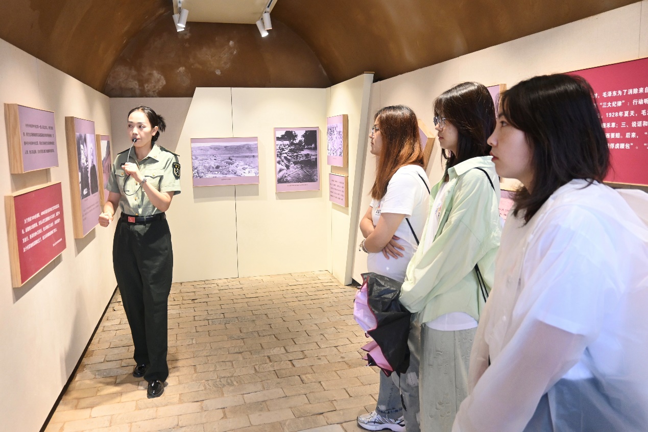 团队成员在毛泽东雪地讲话旧址参观展陈。
