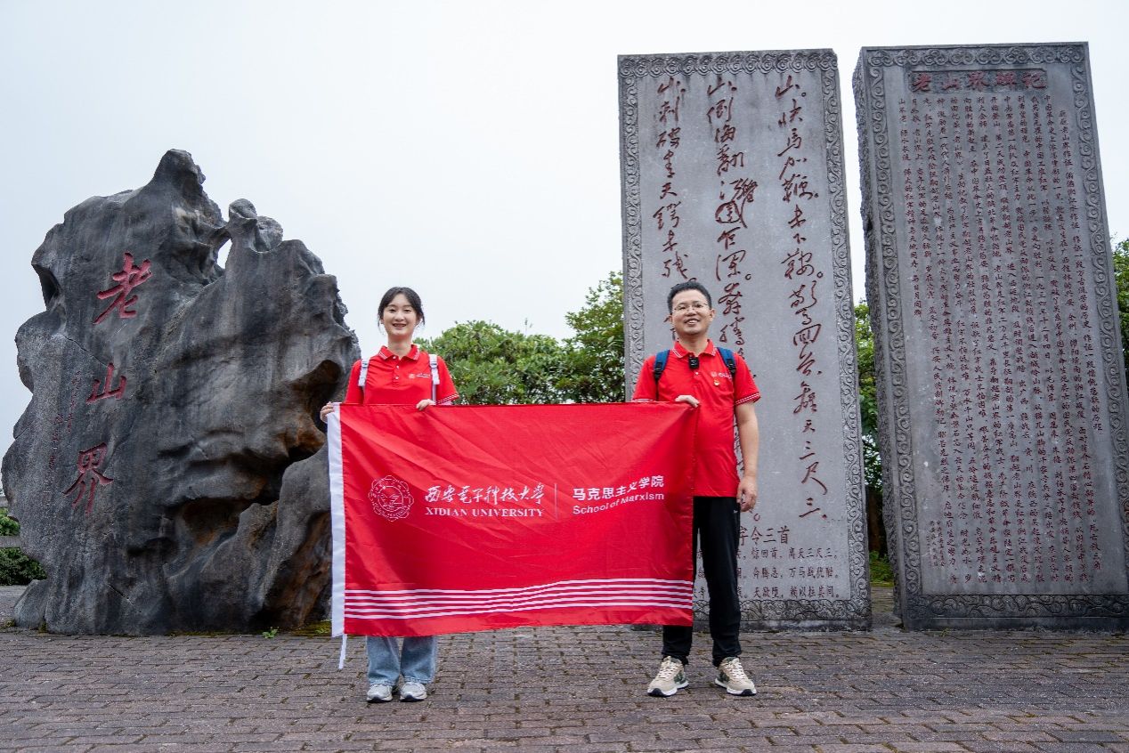 7月23日,申老师与楼佳妮同学随实践团队成员攀登老山界。老山界是红军长征翻越的第一座高山。从山脚到云端,申超老师以山为课堂,以史为教材,为同学们带来“行走的思政课”,深情讲述了老山界上的红色电波。同时,结合楼佳妮同学编排的情景剧《弹片之笔 信念之光》,用艺术的形式再现了李贻玉先辈在艰苦条件下以弹片为笔,书写知识、信念和斗志的壮举。随后申老师总结到,当年西电师生在逆境中坚持办学,利用无线电技术为红军的信息传递和革命胜利做出了重要贡献,展现了党的深切关怀与长征精神的伟大力量。这一堂课,让同学们对无线电事业的特殊性和重要性有了更深刻的理解。