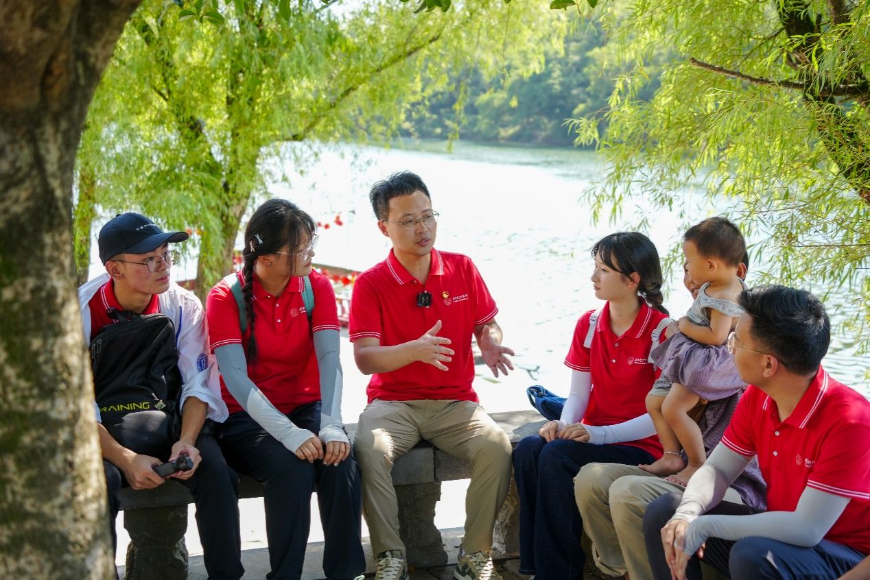 7月25日,团队成员行至湘江之畔,申老师带领员工们和当地老乡回顾了湘江战役的悲壮历史,并结合《学无止境:四个时代的跨越》这一主题,讲述了通校师生湘江之畔巧用学习工具学习理论知识、练习收发报技术的感人事迹。楼佳妮同学与团队成员一起进行了情景剧演绎,展示了西电前辈们的聪明才智。