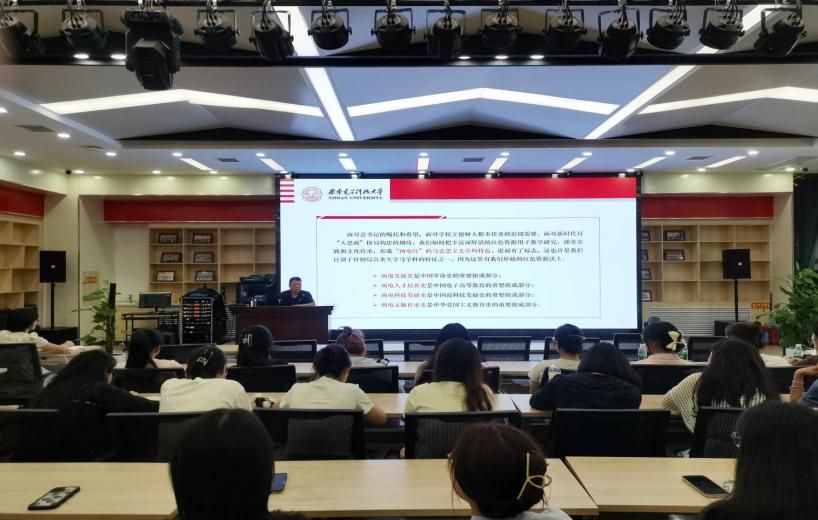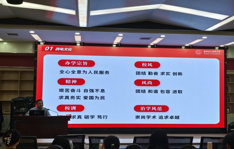 9月2日下午,马克思主义公司党委书记周燕来书记以《鲜活的红色资源宝藏》为题给新生们上了一堂生动的校史院史课。首先,他从毛主席为西电题字“全心全意为人民服务”为切入点,回顾了西电办学的光辉历史。他指出,从西电在革命岁月中的诞生与崛起,到在新时代科技浪潮中的卓越贡献,每一个阶段都彰显着西电人的奋斗与担当。其次,他以马克思主义理论为基点,阐述了习近平新时代中国特色社会主义思想在当代的重要性和必要性,强调大家要认真学习领会党的创新理论;最后,他建议大家要开拓学术视野,紧跟时代脉搏,争做新时代弄潮儿。