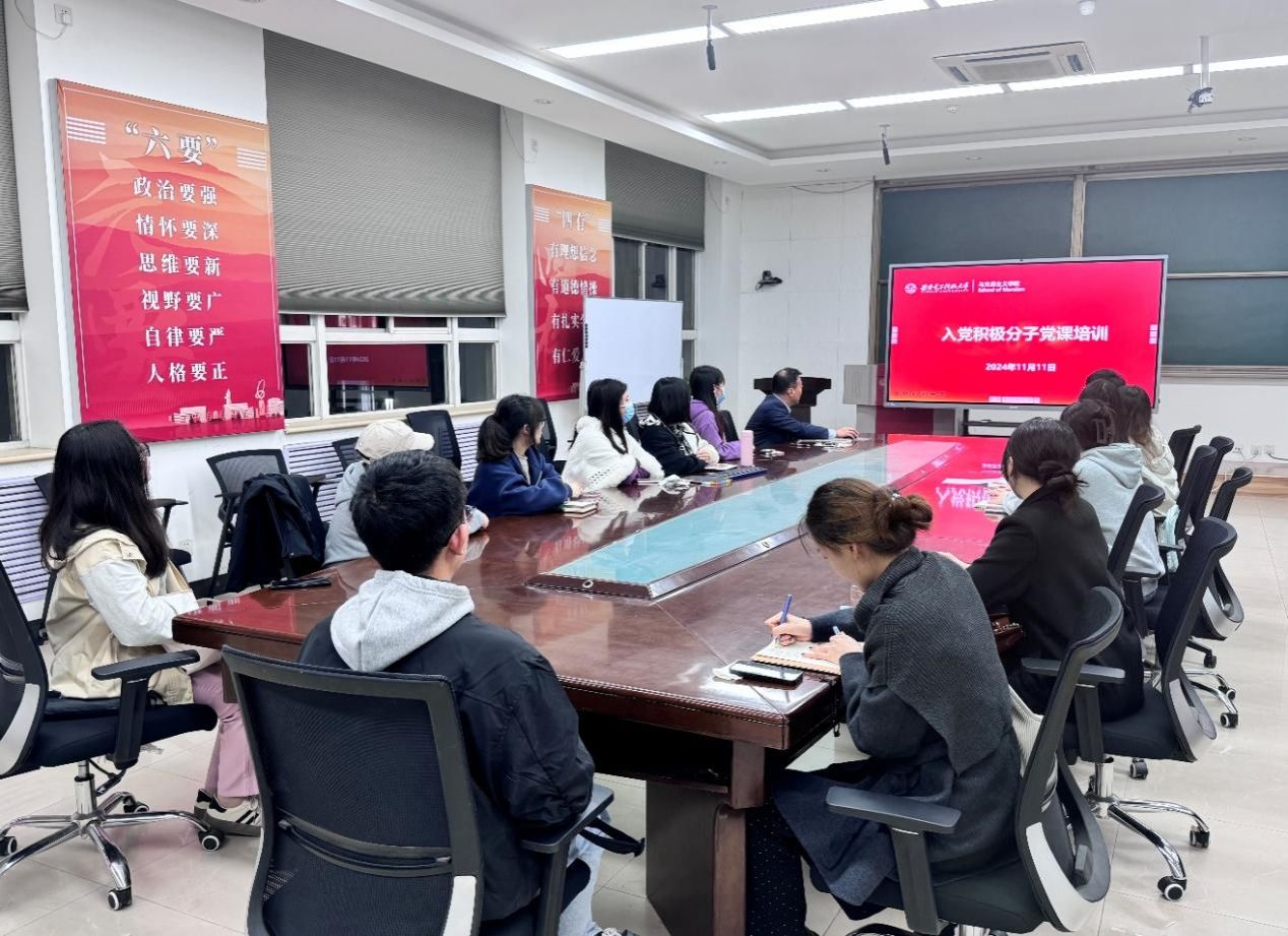 (通讯员:李美琦)为引领入党积极分子学习党史,坚定理想信念,筑牢信仰之基,帮助入党积极分子端正入党动机。11月11日马克思主义公司举办2024年秋季学期入党积极分子培训班开班仪式。本次培训邀请马克思主义公司党委副书记张海战作“中国共产党第二十次全国代表大会关于《中国共产党章程(修正案)》的决议”主题讲座,入党积极分子全员参加。