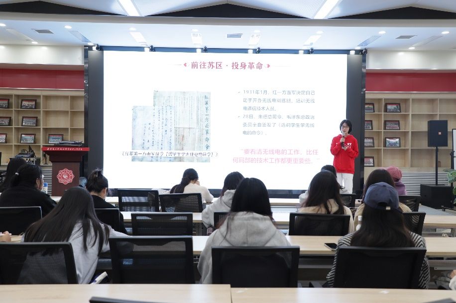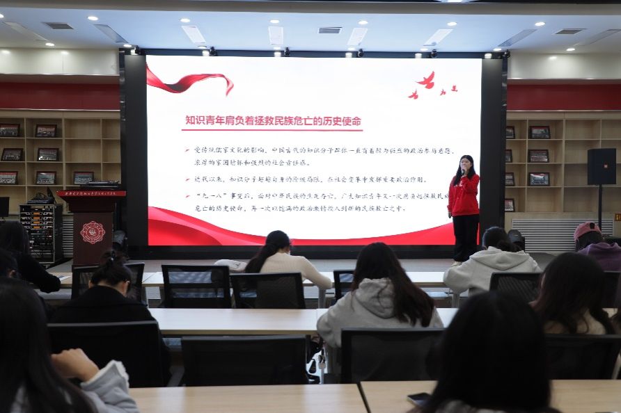 出发前,同学们齐聚南校区B112报告厅,通过倾听“青”声“习”语宣讲团成员的讲述来共同学习八路军西安办事处的相关历史故事和英雄人物。王亚芳介绍了张露萍同志的生平和她保护党内情报机密,不畏强暴、英勇就义的先进事迹,一首《七月里的石榴花》深刻展示了张露萍同志坚贞不屈的意志和对党的忠诚热爱。王志赢对代号“木匠”的涂作潮同志进行了介绍,他青年立志,为国而学,积极参与到党的无线电教学中去,为党组织的事业贡献了自己的毕生力量,是精钻通讯的伟大共产主义战士。王遥远对西安“八办”精神进行了系统而深刻的讲解,对广大知识青年奔赴延安抗日的原因和经历进行了阐述,充分展示了中国共产党打赢抗日战争的坚定决心和不畏艰险的顽强意志。