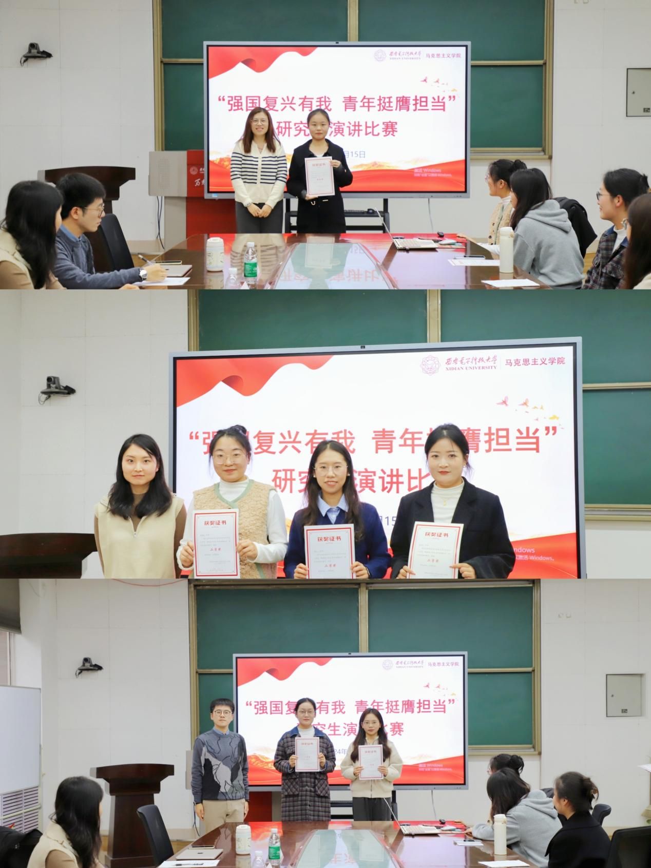在本次比赛中,六位同学通过精美的PPT紧紧围绕着党的二十届三中全会精神和全国教育大会精神展开论述。她们以具体的案例和动人的话语,淋漓尽致地展现了马院学子对于“教育强国、西电何为”这一课题的深刻理解,使得整场比赛充满了力量和启迪。