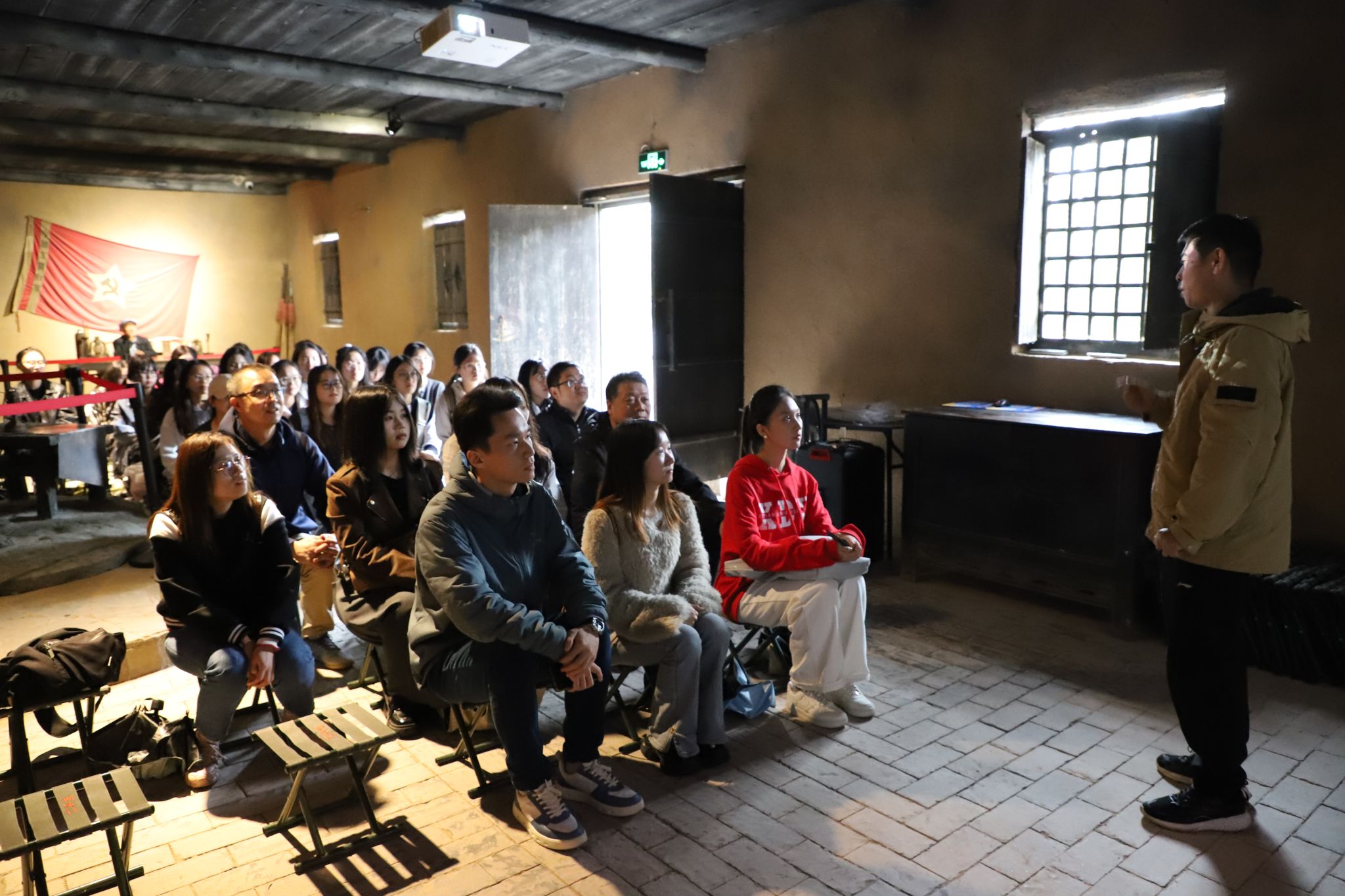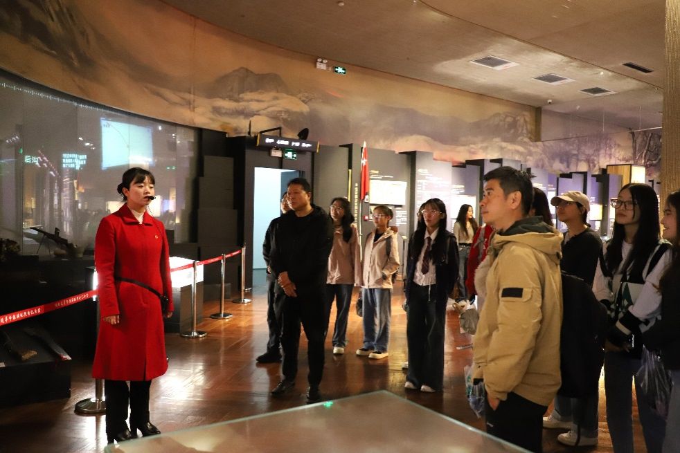 下午,在陈家坡会议旧址的展馆里,师生们上了一堂难忘的“思政课”。师生们一行人坐在小马扎上,聆听晏波老师对陈家坡会议的深刻解读。此次会议在革命历史中占有重要地位,晏波老师生动地讲述着这段革命历程的艰辛与伟大。同学们认真听讲,被老师的讲解深深吸引。苗可欣同学作为代表总结发言,鼓励同学们要赓续红色血脉,传承红色基因,走好新时代我们的长征路。