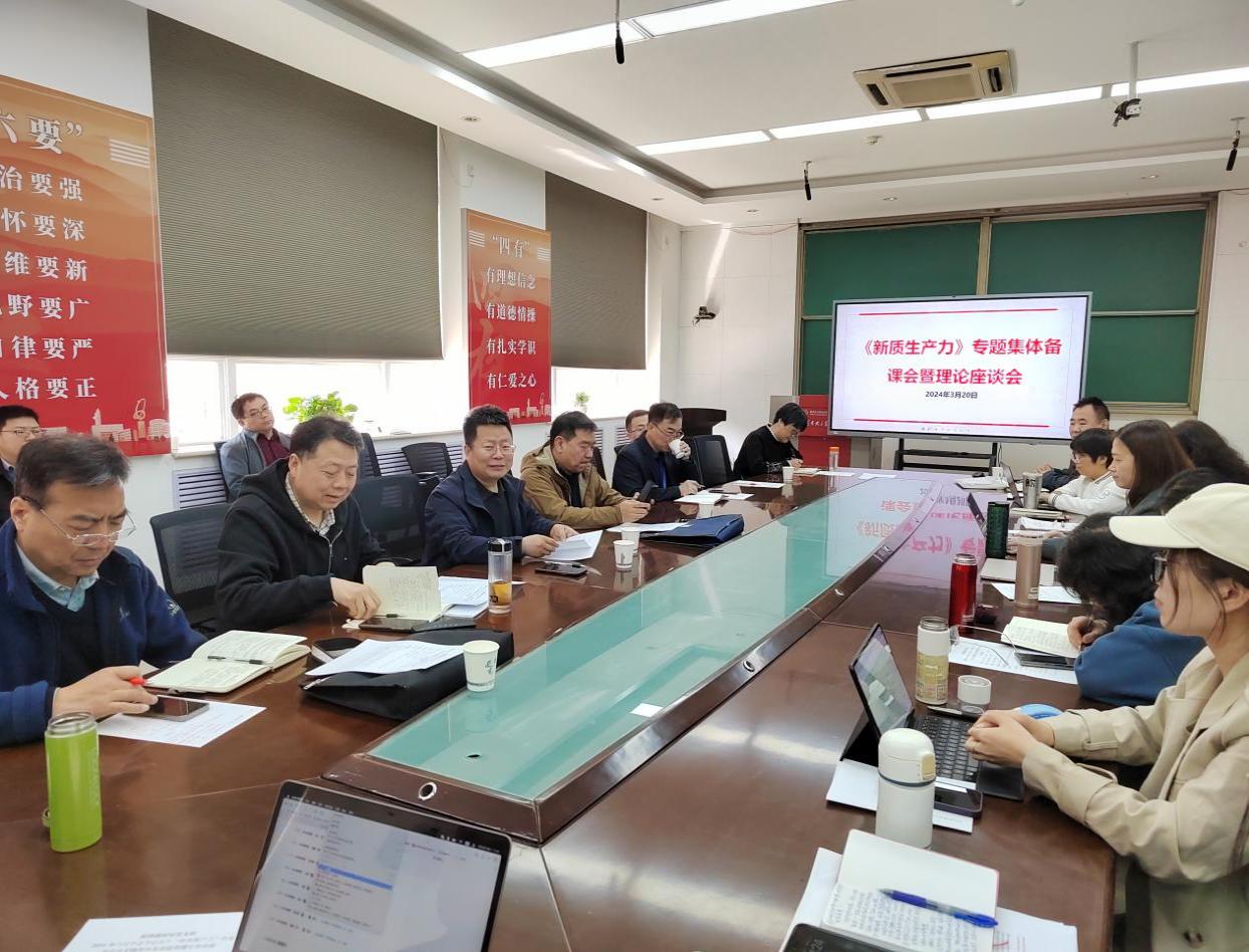 (通讯员 姜波)为贯彻“3·18”重要讲话精神,解决好培养什么人、怎样培养人、为谁培养人这个根本问题,进一步提升教学质量,推动教研室建设与课程建设,马克思主义基本原理教研室于3月20日上午,在南校区信远楼II-206室组织召开了《马克思主义基本原理》课程组开展“新质生产力”专题集体备课会暨理论座谈会。公司领导、陕西师范大学专家袁祖社教授,原理教研室的全体教师以及其他公司教师参加了本次会议,会议由原理教研室主任田朝晖主持。